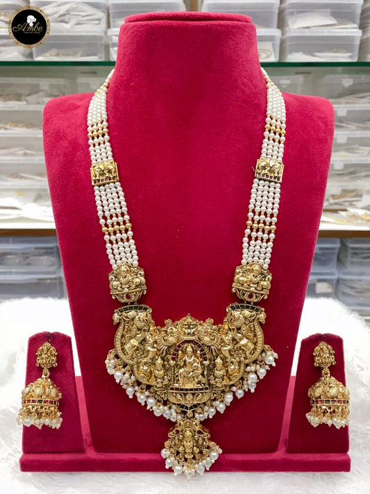 EvenicBuy Temple Heritage: Goddess Lakshmi Antique Necklace Set with Pearl Beads